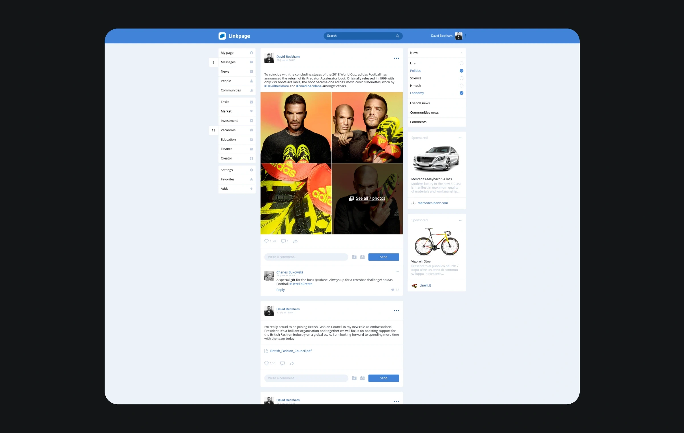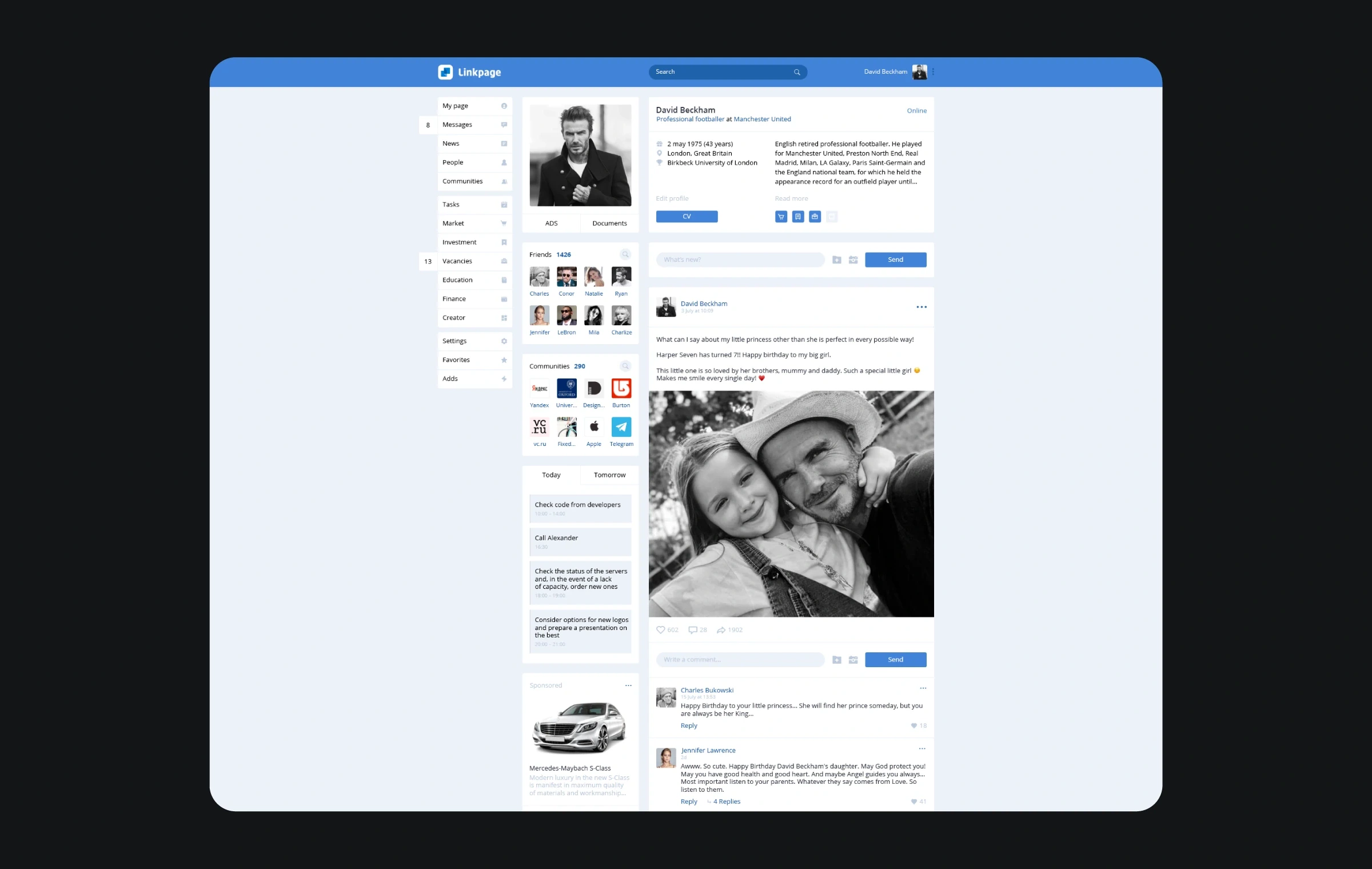 A single platform for communication between business and partners (messages, vacancies, task manager, marketplace, business communities, business education).